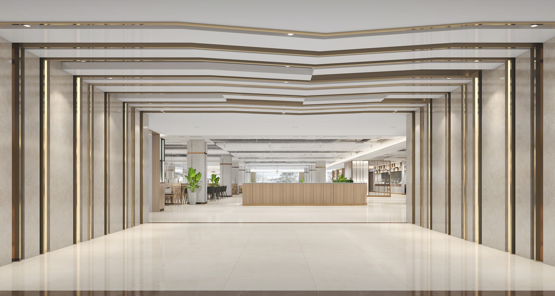 吊頂中的架空設(shè)計(jì)不僅是按芯片的構(gòu)造保留的方框,又使整體空間靈動而深邃,給人以更寬闊的舒適體驗(yàn)?;疑遣粍勇暽?,是包容大度,是端莊靜雅,是一種和諧的氛圍,在整體風(fēng)格的指引下,選用木色的環(huán)保材料點(diǎn)綴明亮的氛圍,構(gòu)建起簡潔,明了的場景。
