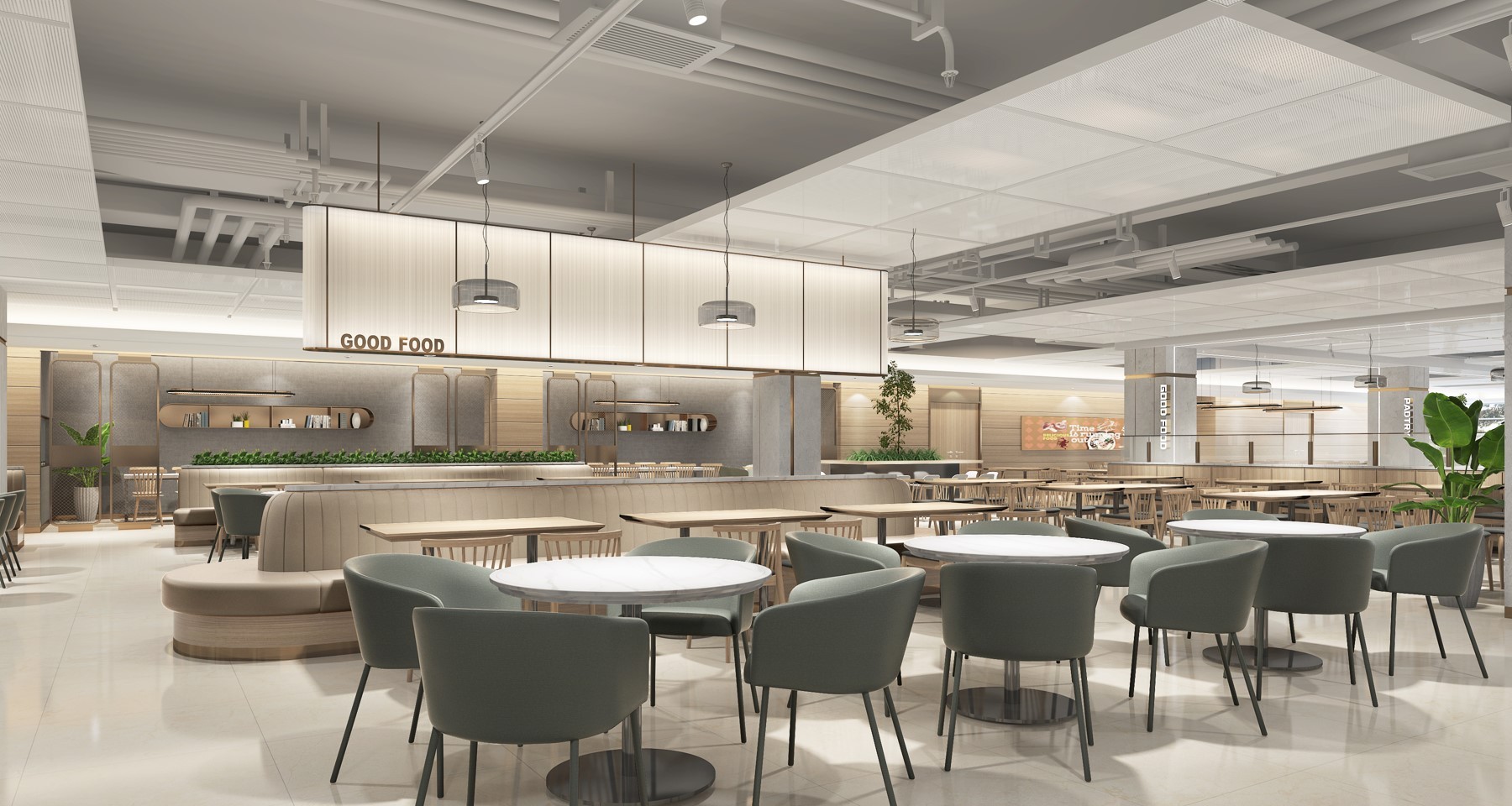 于設(shè)計(jì)的專注凝聚而成的靈感,不僅體現(xiàn)在設(shè)計(jì)本身,更是在原來的基礎(chǔ)上增加了相關(guān)的配套設(shè)施,它們是餐飲空間中不可或缺的一部分,于無聲之處增添體驗(yàn)感,而從設(shè)計(jì)的角度出發(fā),將員工餐廳設(shè)計(jì)的風(fēng)格統(tǒng)一,整體協(xié)調(diào),更是促進(jìn)了空間的融合度。